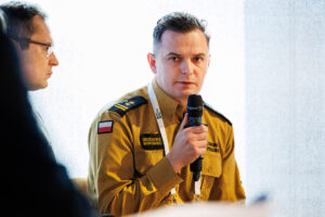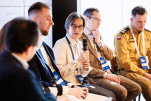 W panelu dyskusyjnym, moderowanym przez dr. Jakuba Ryzenko, udział wzięli: bryg. Grzegorz Borowiec (Komenda Główna Państwowej Straży Pożarnej), Marek Kajs (II Zastępca Głównego Inspektora Ochrony Środowiska) oraz Arkadiusz Radek, Senior Product Designer w ICEYE. Eksperci opowiedzieli o tym, jak ważna podczas zarządzania kryzysem jest świadomość sytuacyjna oparta na sprawdzonych i jak najbardziej aktualnych danych oraz podzielili się swoim doświadczeniem w wykorzystaniu technik satelitarnych w działaniach operacyjnych. Przedstawiciel branży dostawców technologii wskazał, jak istotna jest usystematyzowana informacja zwrotna od użytkowników produktu dla jego udoskonalenia i dopasowania do realnych potrzeb odbiorców.